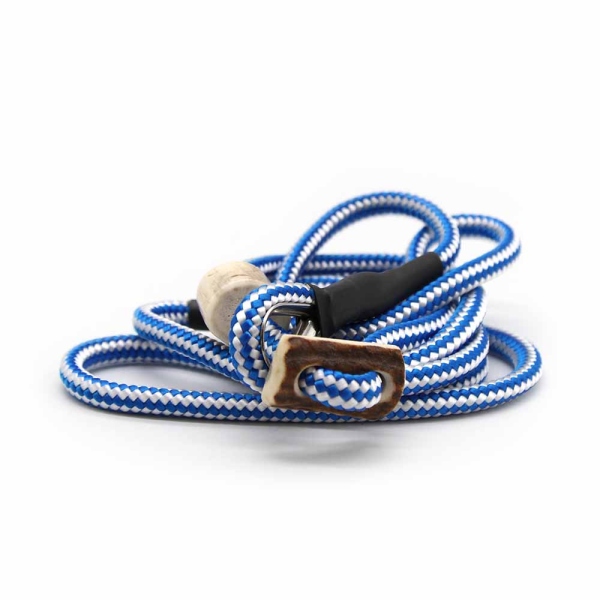 MewogS Moxonleine 6mm HORN mit Zugbegrenzung 100cm blau-weiß Streifen